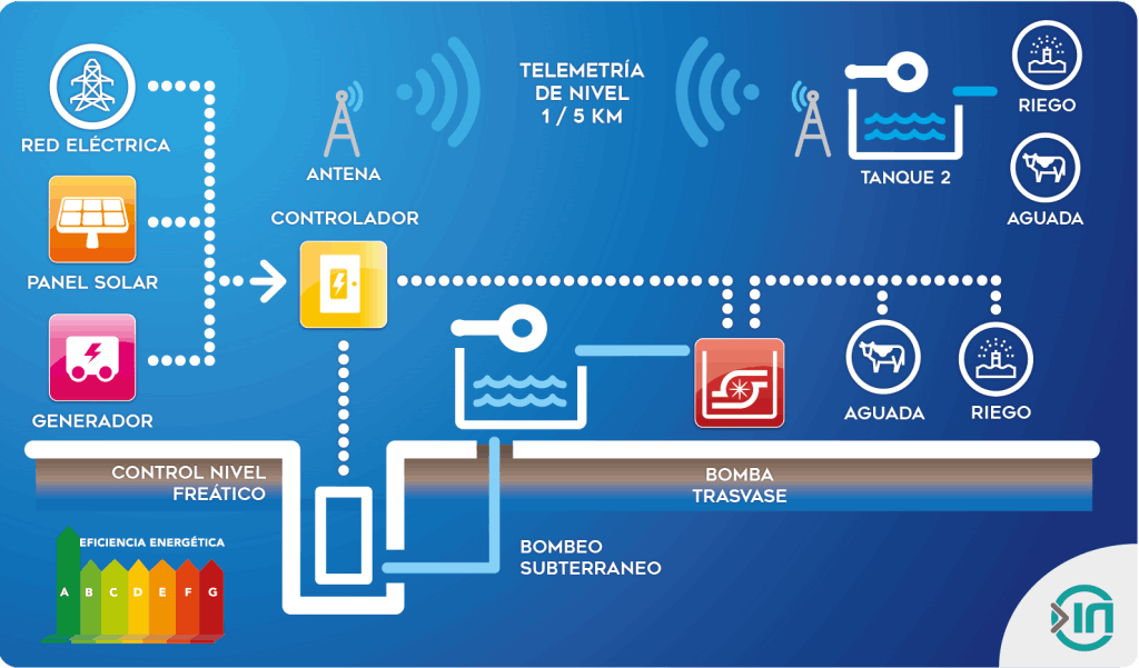 Mantenga la misma bomba que tiene funcionando, la que utiliza con generador y red eléctrica. Funciona con cualquier marca de bomba del mercado. Conjunto de Estructura + Tablero de Control de bomba y Nivel